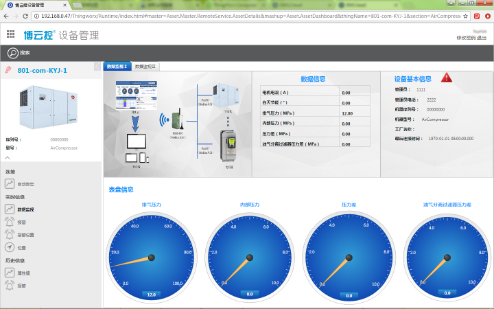 博云控AIoT针对客户的需求为用户提供一整套的解决方案,通过将空压机的数据采集上传到博云控AIoT数据中台,利用可视化界面将数据清晰的展现给客户,同时提供海量的云端数据存储,让数据存储更安全,数据分析更容易。客户通过博云控AIoT数据中台除了可以实时监控空压机的状态,还能在设备发生故障时通过微信向现场维护人员发送报警信息避免影响生产。